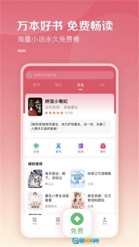 3、分类页面主要为用户提供图书、女生、男生、VIP、听书、漫画等不同类型的书籍;