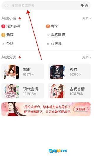 5、首页上方的搜索栏具备小说搜索功能,输入关键字即可获取所需结果。
