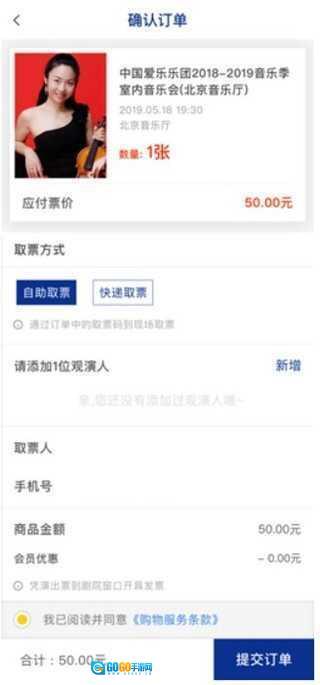 3、在确认订单页面,需选择取票方式(若为实名制购票,还需填写观演人信息),随后点击“提交订单”进入确认支付页面,选择合适的支付方式并完成支付,即可完成购票流程。