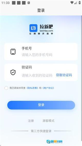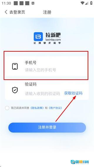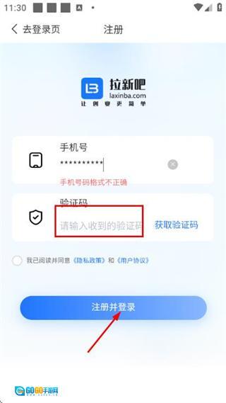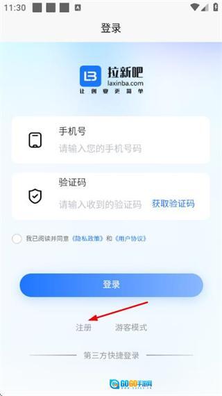 1、在拉新吧的登录界面,点击注册按钮,进入账号注册页面。
