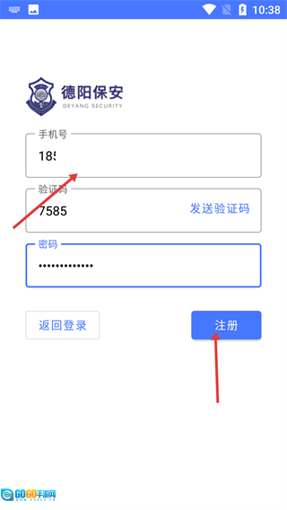4、在注册页面填写好【手机号】【验证码】【密码】这些信息后,点击【注册】按钮,就能完成【德阳保安】的账号注册流程。