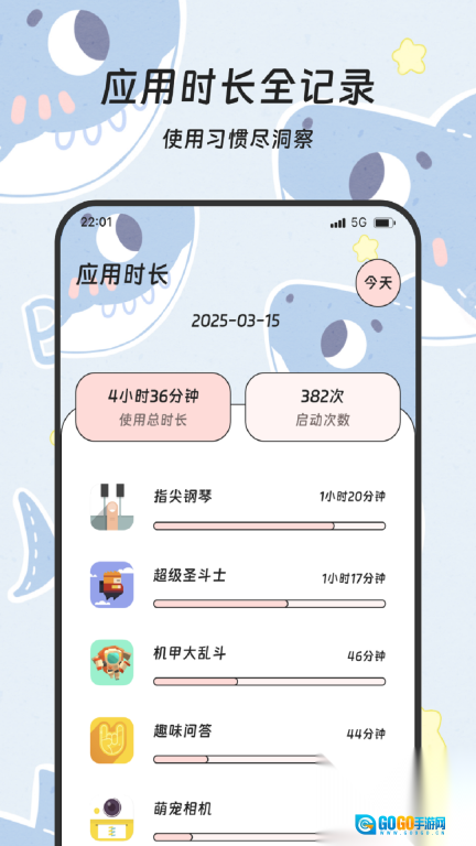 3、记录屏幕使用时长,助力你摆脱手机依赖,养成健康的使用习惯。