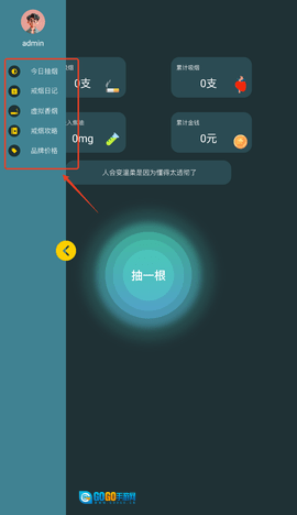 1. 开启功能后,可在首页记录抽烟量,系统会同步展示焦油量、总抽烟数量、累计花费金额等相关数据。