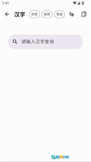 2、点击【汉字按钮】,可查询拼音、部首和笔画。