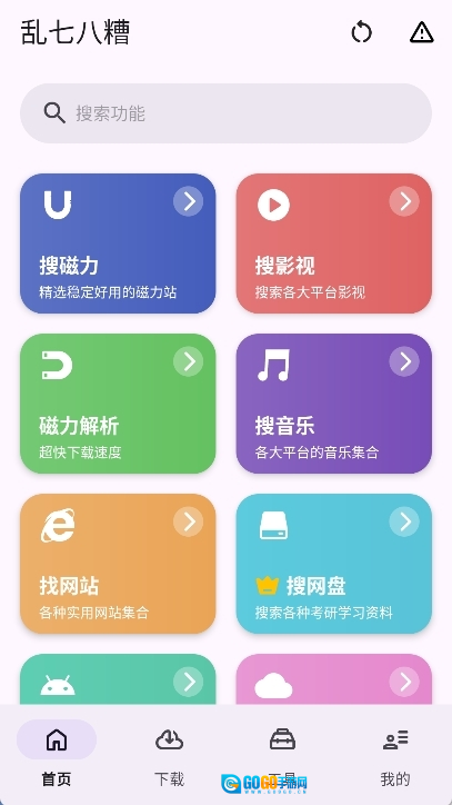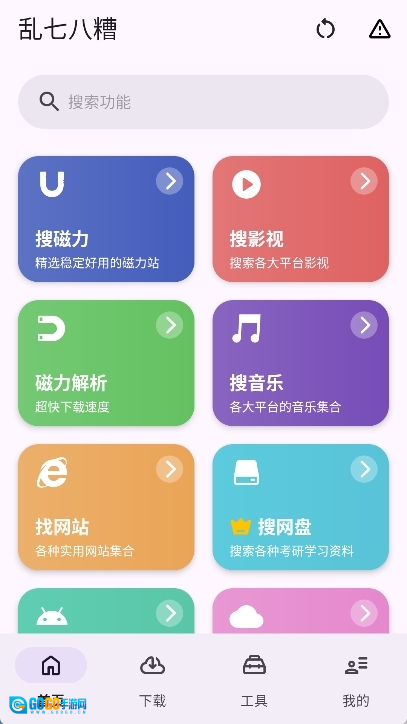 “乱七八糟”是一款集成了多种实用工具的聚合类应用,功能十分丰富,致力于为用户带来全方位的服务体验。它涵盖了磁力搜索、音乐播放、网盘资源查找、壁纸获取以及短视频解析等实用功能,堪称日常生活中必不可少的全能工具箱。