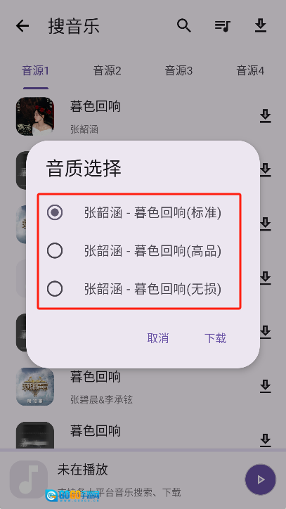 你可以挑选自己想要的音质,比如标准音质或者高品质音质,选好之后点击即可。