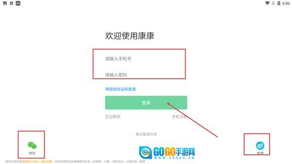 进入登录页面后,你可以选择填写【请输入手机号】和【请输入密码】,也可以通过【微信】【微博】等渠道完成登录操作。