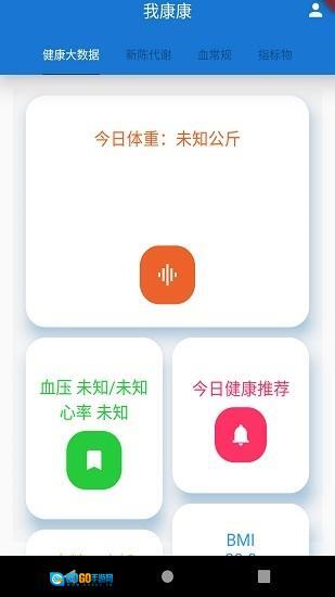 我康康为变幻胶囊公司设计开发的个人电子病历与健康管理应用,当前版本为安卓1.0。该应用可记录用户体重、血压、血糖、血常规、大生化、肿瘤标记物等健康指标,并能对历史数据进行图形化呈现与指标分析。其核心用户群体是亚健康人群,具体包括存在血脂偏高、糖尿病前期、尿酸偏高、血压较高等健康状况的人群。