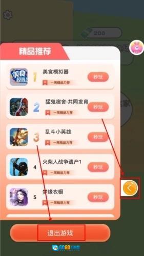 3、不过要是不想继续玩了,就得点击左侧的箭头,这样会弹出【退出游戏】的选项,点击它就能离开并结束游戏啦!