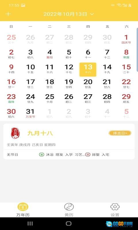 淳尚万年历是一款便于用户及时掌握日历信息的系统工具,它提供的最新日历资讯支持任意查询,且所有时间与信息的更新速度都非常快,无论是节假日还是各类节气的具体安排,都能在日历上清晰呈现。