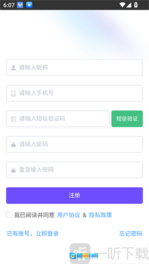 1. 进入软件后,没有账号点击注册。