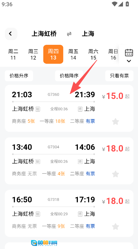 1、车次筛选功能便捷实用,支持价格升序、降序排列及“只看有票”筛选,帮助用户快速定位心仪车次,大幅提升高铁票务查询效率,有效节省用户时间成本。