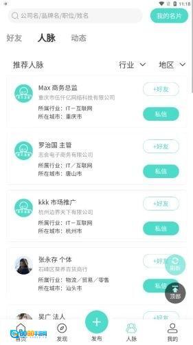 1、人脉信息更新及时,即刻就可以让你获取不错的服务。