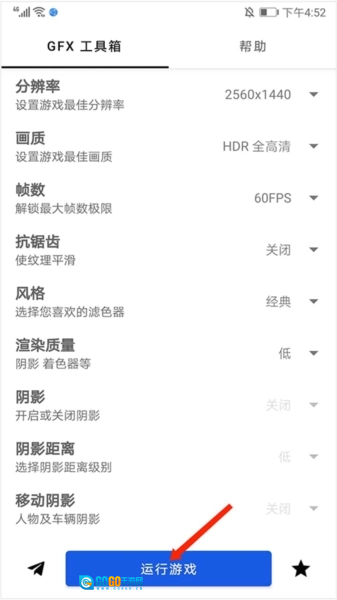 6、最后我们选择【运行游戏】选项,就能开启全新的游戏画质体验,以上就是gfx工具箱的使用方法。