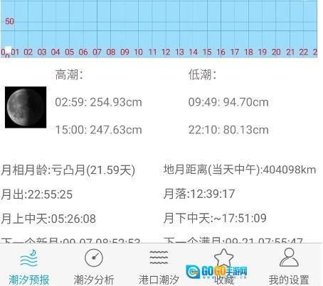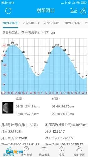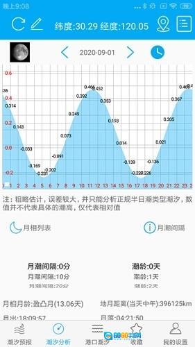 1、该软件可以提供某个地方的潮汐、月相的数据报告,查看方便,一目了然;