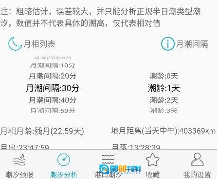 3、你可以使用该软件了解到每个地方的月龄、潮龄、月潮间隔等数据;
