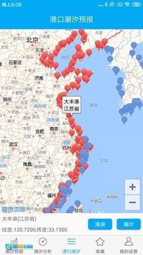 2.港口潮汐,通过地图的形式查看潮汐情况,可以更好的查看预测数据;
