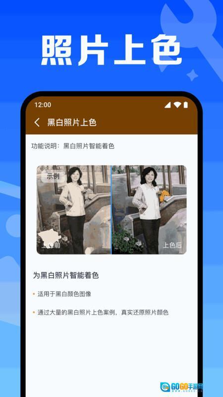 3、上色算法先进,AI在为黑白照片上色时,可精准匹配场景色彩,还原出的彩色照片色彩饱满且过渡自然,使照片更富生命力。