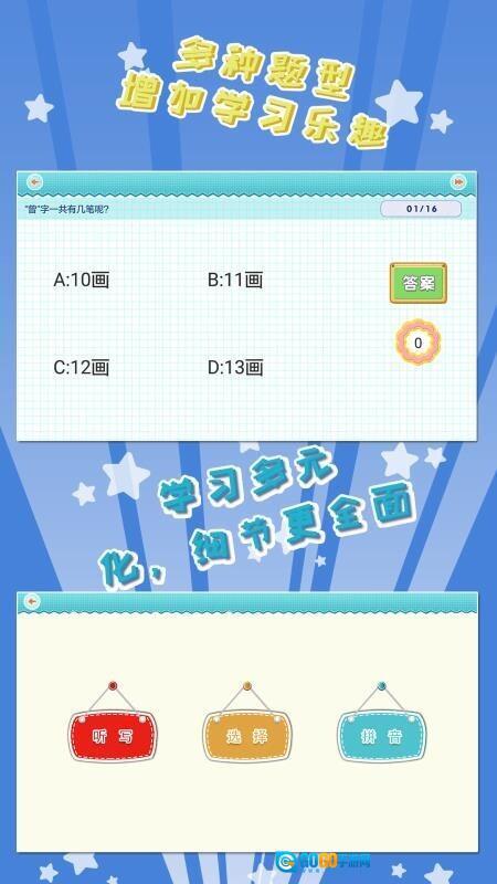 2、我爱写字默认提供拼音发音服务,能帮助孩子正确读写,优化您的使用体验。