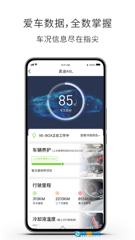 该设备可与vebox智能行车助手相连,能协助您实时监测车辆状况、电瓶电压、冷却液温度以及车辆故障码,还能为您提供车辆使用报告。
