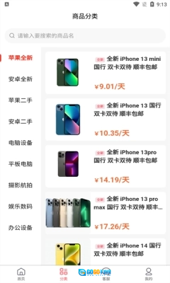 1.系统会推荐大量精选的电子产品,用户可随意选择租赁。