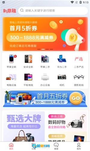 1、在如意租首页,就能翻找需要的商品进行租赁