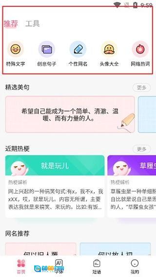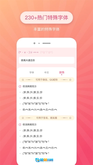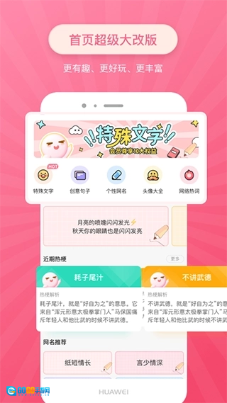 1、安装本站提供的特殊文字,进入首页后可以体验创意句子、个性网络、网络热词等功能;