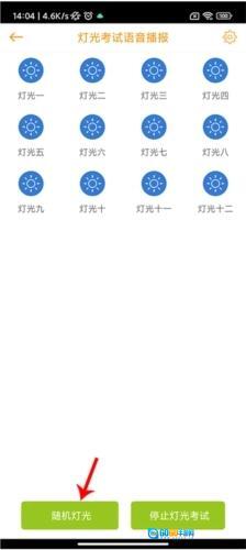 5、拿“灯光模拟”考试来说,在“练车”页面点击“灯光模拟”选项,就能进入对应的操作页面,此时按下随机灯光按钮,灯光考试就会启动;
