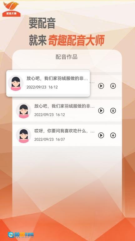 奇趣配音大师是一款手机配音应用,它拥有海量的语音素材,能让你在线进行趣味语音模拟配音,无论何时何地都能免费体验语音配音的乐趣,还支持一键文字转语音功能,操作简单便捷,快来使用奇趣配音大师吧。