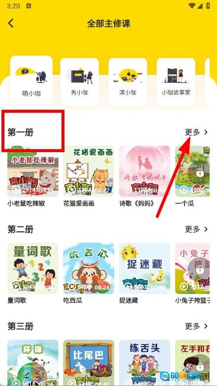 2、进入全部主修课页面后,找到第一册板块,点击它右侧的更多按钮。
