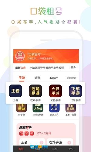 口袋租号隶属于广州利资网络科技有限公司,是一款专注于为游戏玩家提供账号租借服务的软件。它汇聚了市面上上百款热门游戏,同时拥有数十万高端精品账号,玩家可随心租借这些优质账号。该软件覆盖了市面上的大部分游戏类型,无论是热门手游、端游还是Steam游戏都包含在内。而且,当租用时间结束后,如果没有其他用户租用该账号,玩家可以继续使用无需下线,尽情畅玩各类超强好号。