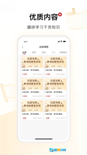 **1.硬笔书法教学视频。**全国中小学书法教学联盟成员、全国双优名家潘永锋老师主讲《硬笔楷书课》,《90天硬笔行楷从入门到进阶》。