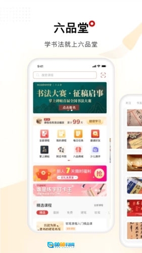六品堂是杭州艺客网络科技有限公司开发的一款书法学习软件,是一个书法生态链品牌,为1亿消费者提供了书画学习用品和书画教学服务,在这里你可以用更低的价格,购买更优质的文房用品,享受更多的教学服务。软件内有多位名师的教学视频,从基础笔画到结构进阶的少儿识字体系课,帮助孩子提升书写技能,练出一手好字,还有很多硬笔、软件书法教学视频,帮助广大书法爱好者更快入门和进阶。