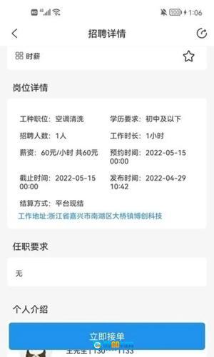 同城招聘,高效招工。无论是找全职工作,还是寻求临时工、兼职、钟点工、小时工、日结工,或是适合学生的兼职岗位,这里都能满足需求。平台采用滴滴式灵活用工模式,结算速度快。涵盖同城兼职、同城小时工、同城钟点工、同城临时工等各类机会,作为靠谱的挣钱平台,操作便捷的赚钱软件让您轻松上手。