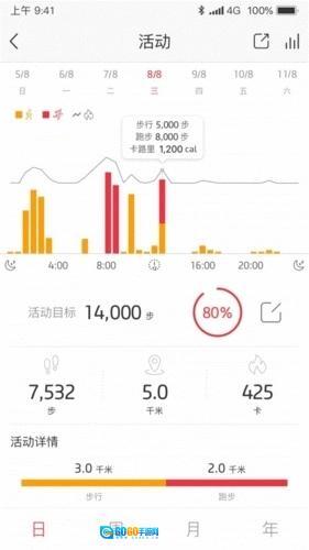 3、软件会依据你的运动状态,对初步数据与跑步情况展开分析,精确程度可细化到每天的每个小时。