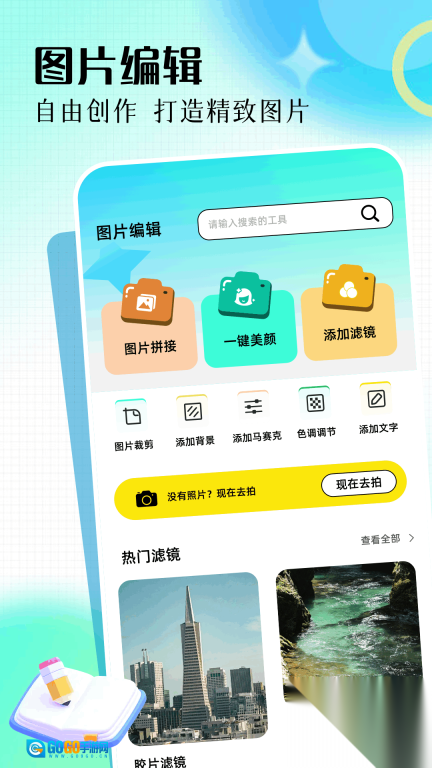 2、可以对图片开展裁剪、拼接、美颜、添加滤镜、马赛克、文字等操作,自由创作出精致的图片。