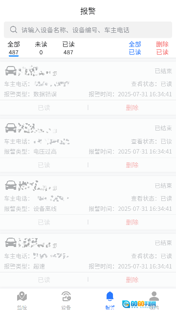 13.针对异常情况采取相应措施(例如联系车主、安排维保等),处理完成后可对记录进行“已读”标记或直接删除。