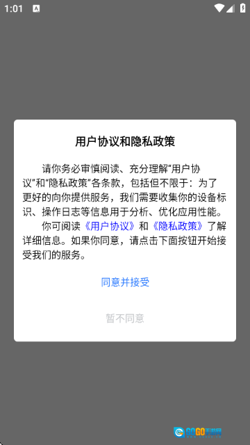 2. 后,阅读并同意《用户协议》与《隐私政策》,