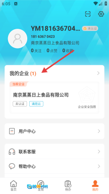 1、启动应用后,切换至“我的”页面,找到并点击页面内的【我的企业】按钮,即可进入企业/团队页面。