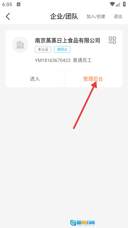 2、在企业/团队页面,点击【管理后台】按钮,即可进入企业管理页面。