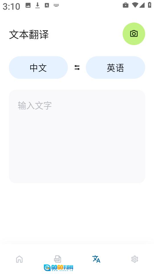1.打开软件后,在输入框中填入待翻译的文本,接着选定源语言与目标语言,就能完成快速翻译操作。