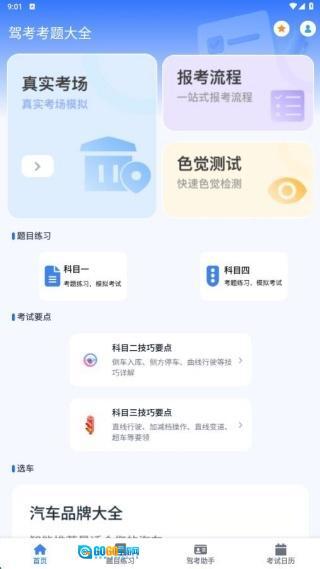 1、首页新增了题目练习、考试要点、选车等多个功能板块,使驾考服务更加贴心便捷。