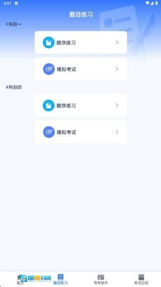 2、进入题目练习页面后,大家能直观看到科一和科四的考题内容,便于快速查阅。
