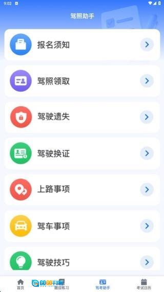 3、进入驾考助手页面,大家可以了解到驾考报名、驾照领取等诸多相关信息。