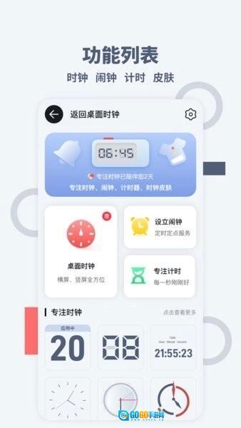 1、多维度时间管理:桌面时间提供时钟、闹钟、计时等多种功能,满足您在不同场景下的需求。