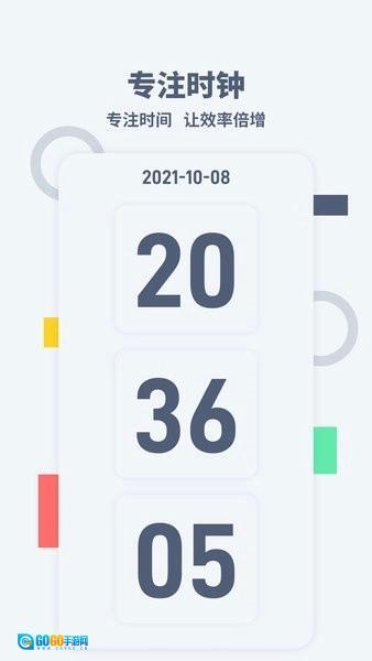 3、专注模式升级:倒计时模式帮助您进入高效工作状态,追踪每日专注时长,激发内在潜力。