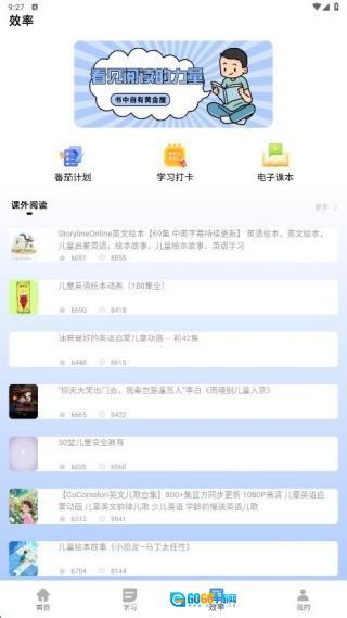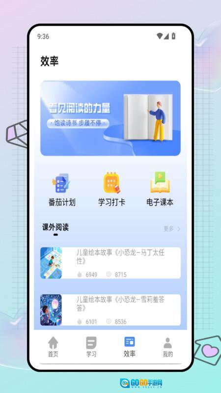 3、效率页面整合了番茄计划、学习打卡、电子课本功能,支持一键浏览。