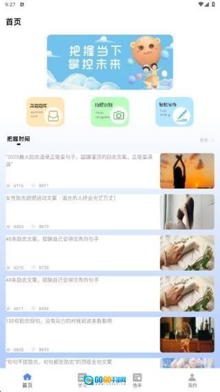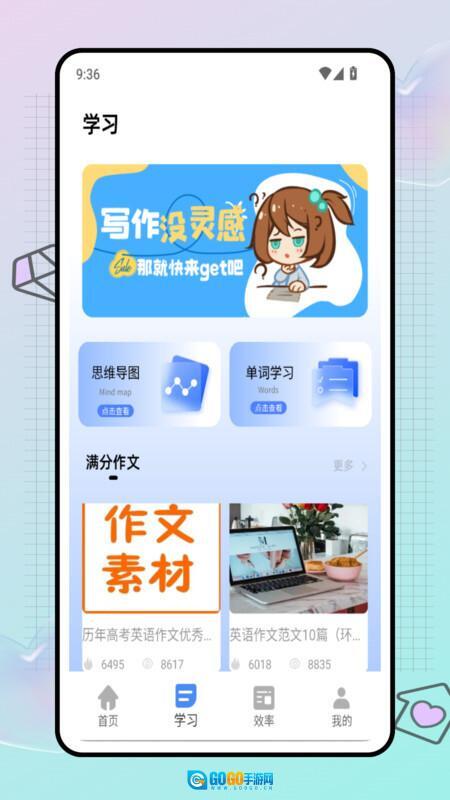 2、在学习页面,你不仅能浏览到丰富多样的满分作文素材,还可以开展单词学习活动。