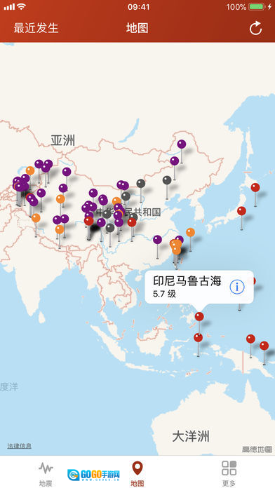 3、全球地图范围内均会进行信息推送,受灾状况清晰可见,各类震级的分布情况也能通过不同颜色加以标注。