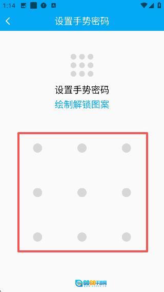 4、进入手势密码设置页面后,绘制解锁图案并进行确认,以此完成手势登录密码的设置流程。